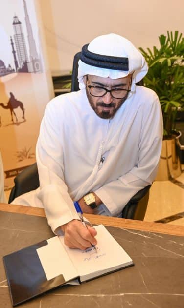 وقع معالي الأستاذ الدكتور جمال السويدي، نسخاً من أحدث إصداراته وهما كتابي «الرحم الاصطناعي.. عالم ما بعد التكاثر البشري»، و«مجتمع دولة الإمارات العربية المتحدة في القرن الحادي والعشرين.. قضايا وتحديات في عالم متغيّر»، والذي صدرت نسختُه الرابعة في إطار مبادرة «عام المجتمع 2025».